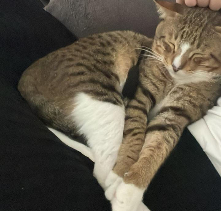 He’s called Big Mo for a reason – he’s a large lad – but it’s his face that really steals the show. Those big, round, soulful eyes (just like Puss in Boots!) will melt you on the spot. Mo is a total cuddle bug, always wanting to be close, soaking up affection, and giving out kisses. He’s also a complete foodie. He’s on a bit of a diet at the moment, but that doesn’t stop him from trying his luck for an extra bite. And when he’s not politely asking for more snacks, he’s showing off his hilarious poses – the kind that make you stop and grab your camera – or being adorably clumsy as he wriggles in for more cuddles.