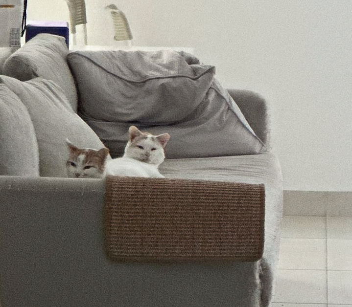 Nemo, in particular, is becoming more and more affectionate with his foster mum. He now comes to sit beside her on the sofa, sleeps next to her, and has even started asking for gentle pets — a huge step for him. Luna, meanwhile, remains the independent spirit. She is still untouchable for now, but endlessly curious, preferring to supervise life from a comfortable distance and very much control the interaction on her own terms.