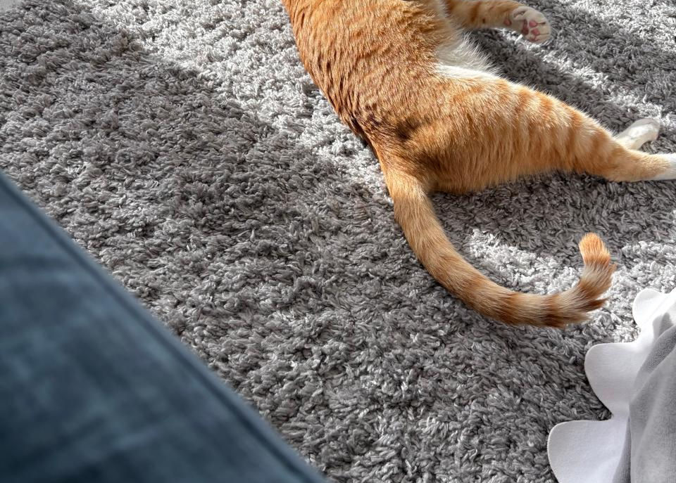 Stitch is the sort of cat who chooses his moments. When he wants affection, he will come over quite confidently for it. When his people return home, he greets them warmly and follows them around the house to see what they’ve been up to. Once the day settles down, he’s equally happy to join the family for some quiet company — perhaps watching television nearby or claiming a comfortable spot on the bed.